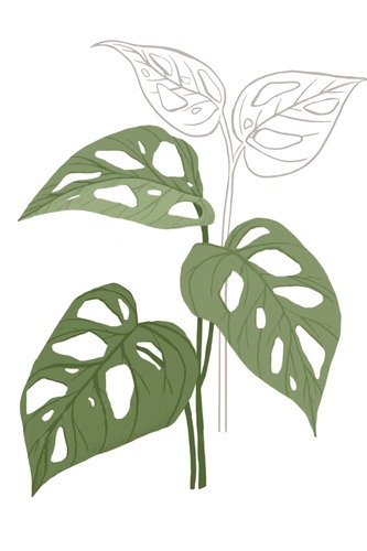 MUDECOR Framed Monstera Delight Botanical Minimalist Greenery Illustration RelaxCalm Warm work Black Frame