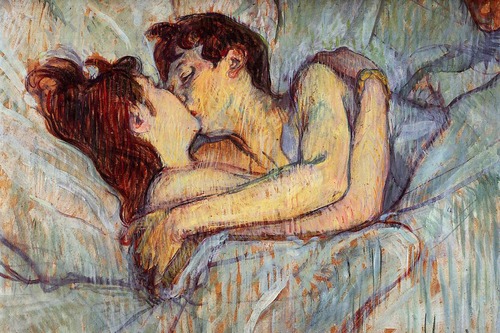 in Bed The Kiss by Henri de ToulouseLautrec Framed Famous Painting Reproduction White