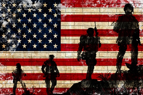 Vintage Retro Grunge American Army Soldiers with Flag Cultural Historic Digital Decorative Global Patriotic Living Room Bedroom Office