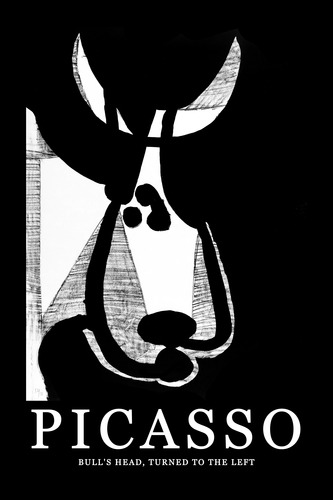 MUDECOR Framed Picasso Black White Bull's Head Portrait Shapes Abstract Illustrations Minimal Dramatic Cool Dark Living Room Bedroom Office White