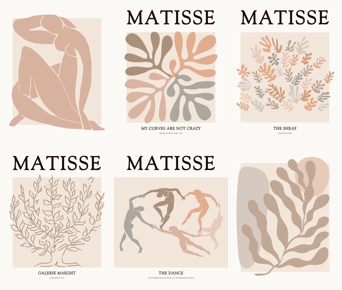 Framed Collage Set MatisseInspired Neutral Tones with Organic Shapes and Figures Illustrations Decorative Colorful Living Room Bedroom Office Black