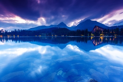 Mountain Lake in National Park High Tatra Dramatic Overcrast Sky Strbske Pleso Slovakia Europe Beauty World