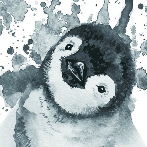 Framed Baby Penguin Ink Drawing Animals Wildlife Watercolor Expressionism FarmhouseCountry Portrait Dramatic Black and White Living Room Bedroom Office