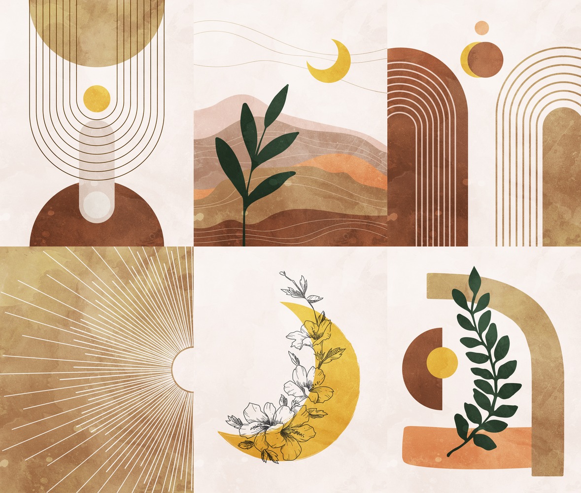 SIGNLEADER Collage Set Watercolor Southwest Planets Plant Polygons Abstract Shapes Illustrations Nordic Living Room Bedroom Office Unframed