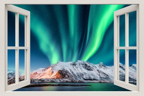 Window View Northern Light Borealis Alaska Mountain Wilderness Nature Photography Realism Scenic Landscape Colorful Multicolor Living Room Bedroom Office
