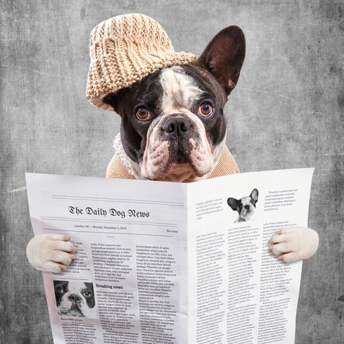 Cute Bulldog in Beanie Hat Reading the Newspaper Bathroom Decor Funny Animal Bathroom Nature Digital Decorative Whimsical Expressive Bedroom
