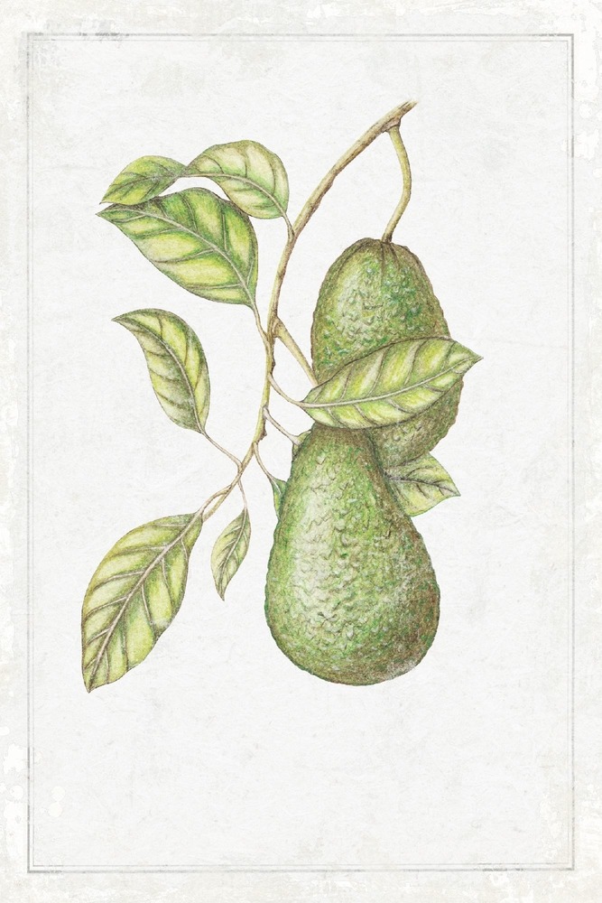 Hand Drawn Green Avocado Fruit Tree Series work