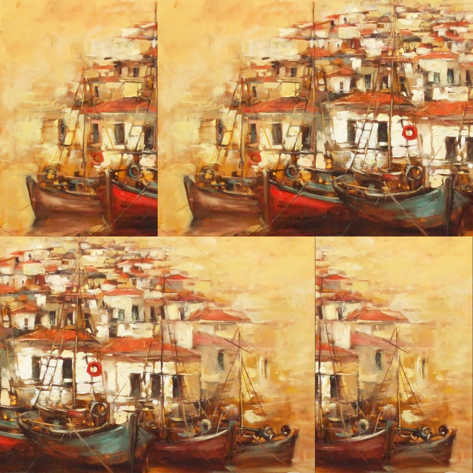 Boats on The Island HarborHandmade Oil Painting on Stretched and Framed