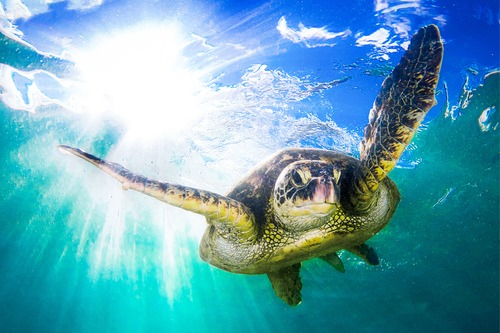 Framed Sunlight Tropical Ocean Underwater Turtle Nature Animals Realism Rustic Scenic Landscape Wilderness Earth Colorful Living Room Bedroom Office White