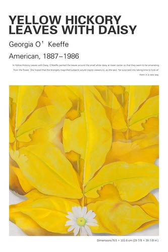 IDEAWALL Framed Yellow Hickory Leaves with Daisy Master Aritst Georgia O' Keeffe Oil Painting Realism Contemporary Closeup Living Room Bedroom Office
