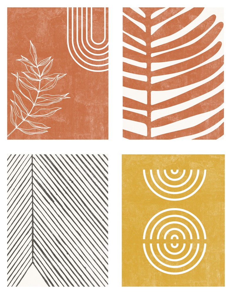 SIGNLEADER Set Decor Orange Rustic Plants Geometry Symbols Nature Wilderness Illustrations Chic Colorful Living Room Bedroom Office Unframed