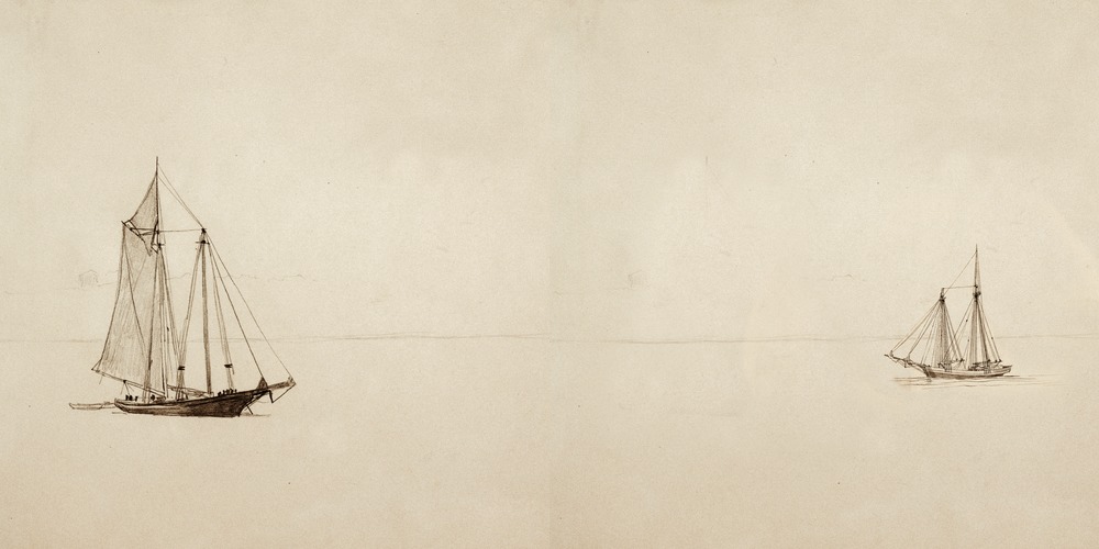 Sailing Vessel on the Horizon Nautical Wilderness Drawings Chic Colorful Living Room Bedroom Office
