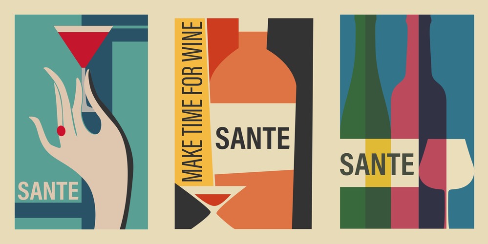 Set Deco Multicolor Wine Bottle Poster Drinks Cocktails Food Winery Illustration Decorative Chic Contemporary Living Room Bedroom Office