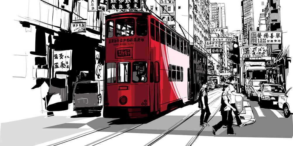 Framed Street in Hong Kong Vector Illustration Home Stretched and Framed Natural