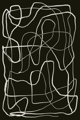 Framed Minimalist Black Gray Loop Pattern Abstract Shapes Illustrations Minimal RelaxCalm Duotone Dark Living Room Bedroom Office White