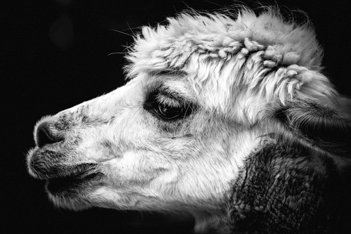 Framed Black White Llama Side Profile Close Up Animals Wilderness Photography Realism Rustic Scenic Dramatic Dark Living Room Bedroom Office Natural