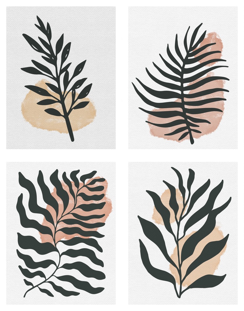 SIGNLEADER Set Decor Black Leaf and Pink Watercolor Backgrounds Botanical Illustrations Chic Colorful Living Room Bedroom Office Unframed