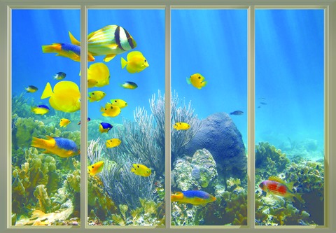 Yellow Fish Swimming Over The Coral Reefs Viewed from Sliding Door Mural Peel and Stick paper