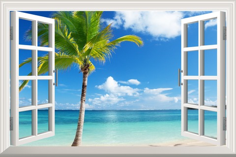 Window Frame Beautiful SceneryLandscape Palm Tree on Tropical Beach Stretched