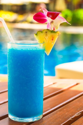 Tropical Blue Cocktail on a Beach Near a Swimming Pool ation