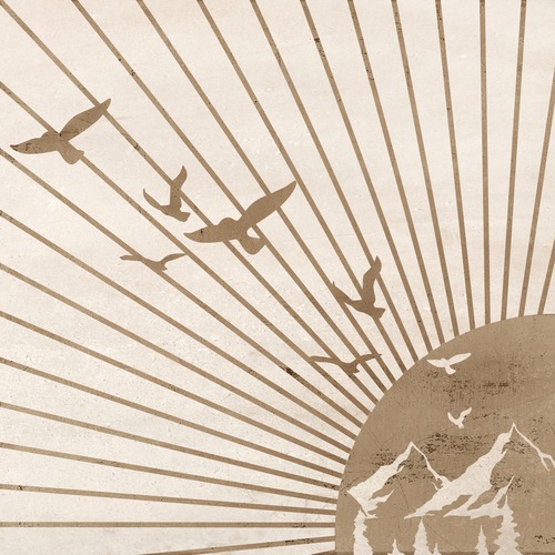 MUDECOR Premium Framed Soaring Spirits Birds in Flight Over Mountain Peaks Illustrations Fine Decorative Retro Multicolor Living Room Bedroom Office Natural