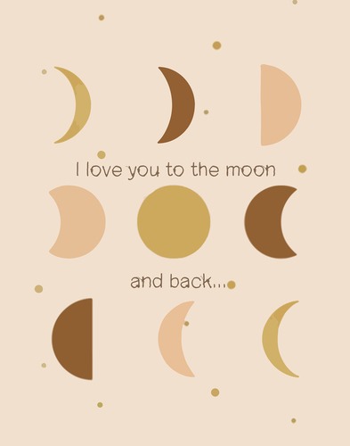 Adhesive Poster I Love You to The Moon and Back Warm Family Romantic Pale Yellow Astronomy Moon Stars Inspirational Living Room Bedroom Office