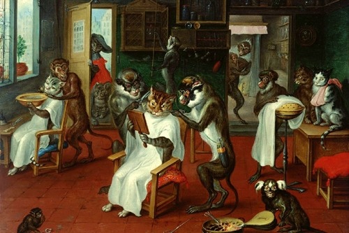 artprintsstop Cat Series Barbershop with Monkeys and Cats by Abraham Teniers