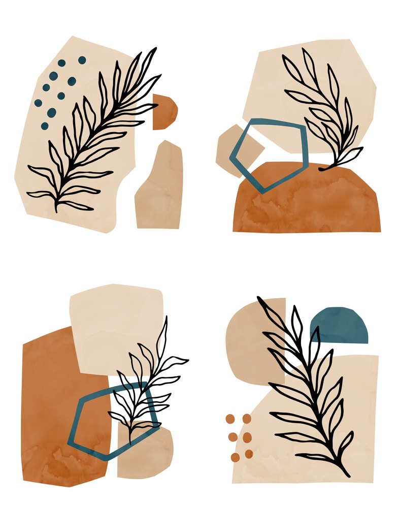 SIGNLEADER Collage Decor Set Nordic Leaf Symbols Polygons Nature Wilderness Illustrations Decorative Multicolor Living Room Office Bedroom Unframed