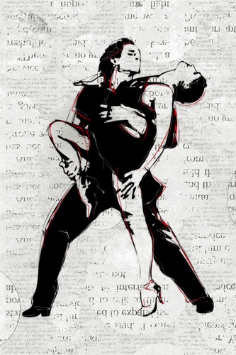 Framed Dancing Duo on Newspaper Dance Fashion Illustrations Chic Portrait Expressive Multicolor Cool Living Room Bedroom Office Black