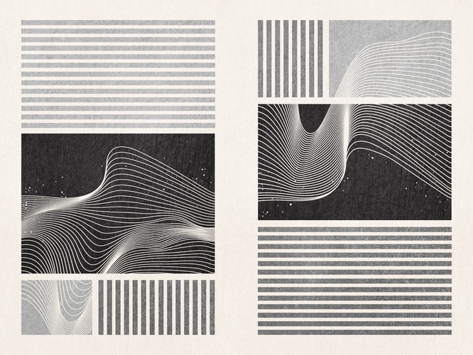 IDEAWALL Framed Set MidCentury D Wave Illusion Collage Abstract Shapes Illustrations Chic Landscape Neon Living Room Bedroom Office Black