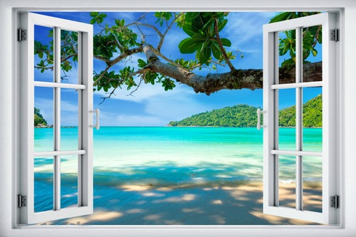 Window View Tropical Island Beach Paradise Vacation Wilderness Nature Photography Realism Scenic Landscape Colorful Multicolor Living Room Bedroom Office