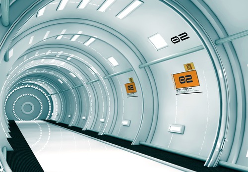 Removable Sticker Mural Cosmic Space Station White Tunnel Astronomy Space SciFi Fantasy Digital Realism Decorative Interstellar Living Room Bedroom Office
