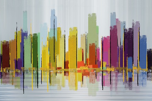 MUDECOR Framed Rainbow Watercolor Paint Stroke City Abstract Building Illustrations Bohemian Urban Multicolor Living Room Bedroom Office Natural