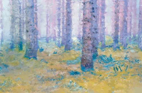 Framed Pastel Violet and Yellow Winter Birch Trees Nature est Oil Painting Abstract Closeup RelaxCalm Living Room Bedroom Office White