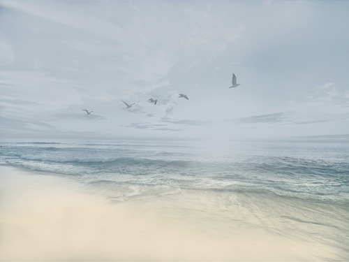 Framed Poster Birds Flying Over Pastel Stormy Ocean Sea Landscape Nautical Marine Life Photography Decorative Minimalism Multicolor Nature Wilderness Bedroom Black