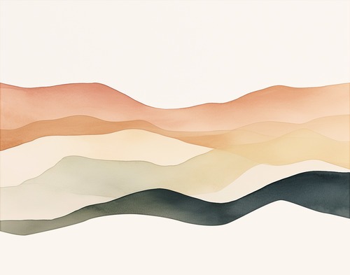 Framed Poster Abstract Watercolor Landscape Layers Warm Desert Illustration Minimalist Relax Multicolor Living Room Bedroom Office Black