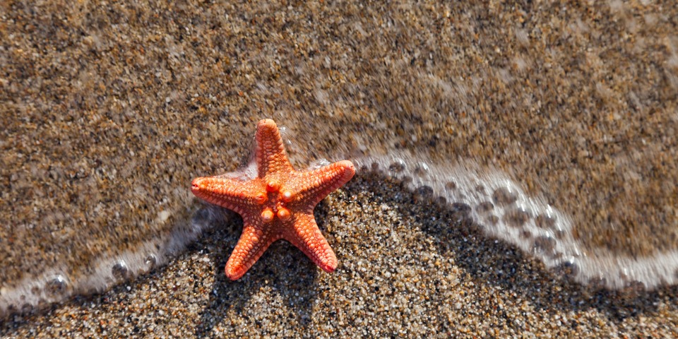 Summer Vacations Starfish in Water Waves on Sea Sand Beach Stretched and Framed