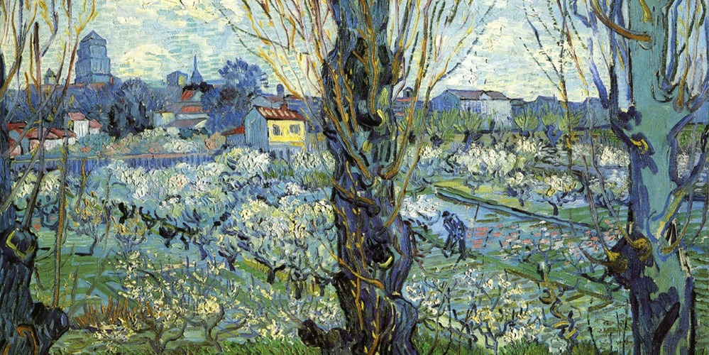 Set Orchard in Bloom with Poplars Vincent Van Gogh Classical Illustrations Fine Decorative Historic Vintage Living Room Bedroom Office