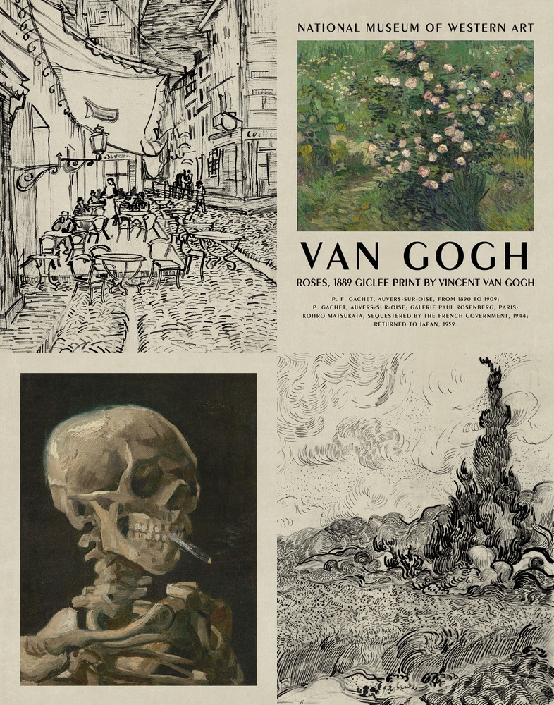 Framed Poster Bathroom Decor Black Room Decor Multicolor Living Room Bedroom Office Vincent Van Gogh Smoking Skeleton Wildflowers Vintage Master ist