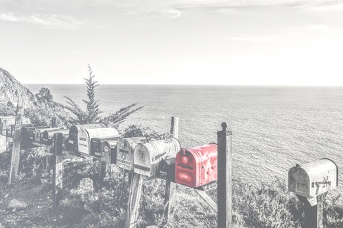 SIGNLEADER Framed Red Mailbox and The Ocean Nature Cityscape Photography Realism Rustic Scenic RelaxCalm Cool Black and White Living Room Bedroom Office White
