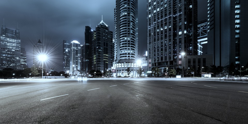The Light Trails on The Building Background in Shanghai China Stretched and Framed