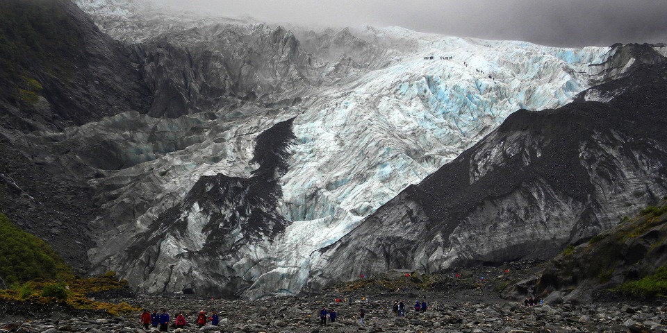 Mountainous Area with Mountain Climbers Stretched and Framed