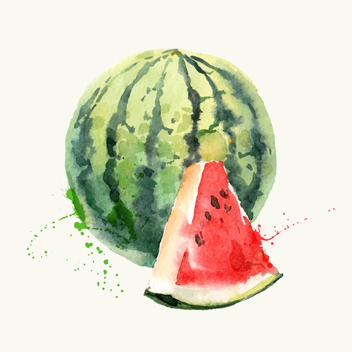 Square Watermelon Watercolor Fruits Watercolor and Illustrations