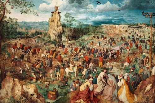 Floating Frame The Procession to Calvary with Christ Carrying The Cross by Pieter Brueghel The Elder (Black Frame)