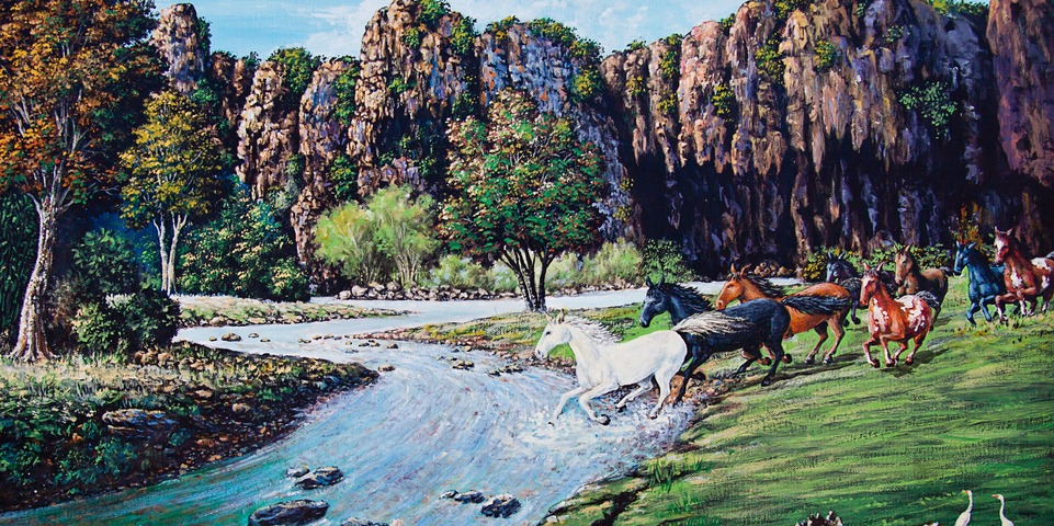 Horse Crossing The River of Oil Painting Stretched and Framed