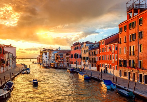 Removable Sticker Mural Vibrant Sunset Venice Italy Boat Canal Cityscape Landmarks Photography Realism Bohemian Urban Decorative Landscape Living Room Bedroom Office
