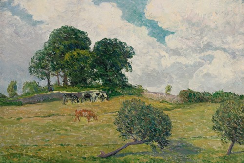 Framed Vintage Cow Countryside Farm Field Nature Wilderness Illustrations Fine Decorative Landscape RelaxCalm Living Room Bedroom Office White