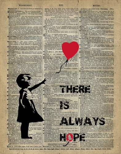 Adhesive Poster Balloon Girl Retro Hope Love Peace Faith Vintage Newspaper OId Rustic Dictionary Banksy Street Graffiti Living Room Bedroom Office