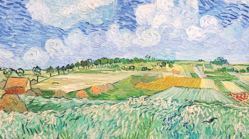 Panel Plain Near Auvers by Vincent Van Gogh Abstract Plants Illustrations Impressionism Panoramic RelaxCalm Multicolor Living Room Bedroom Office