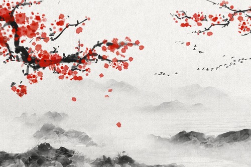 Plum Blosssom Flowers Painting work Home Framed